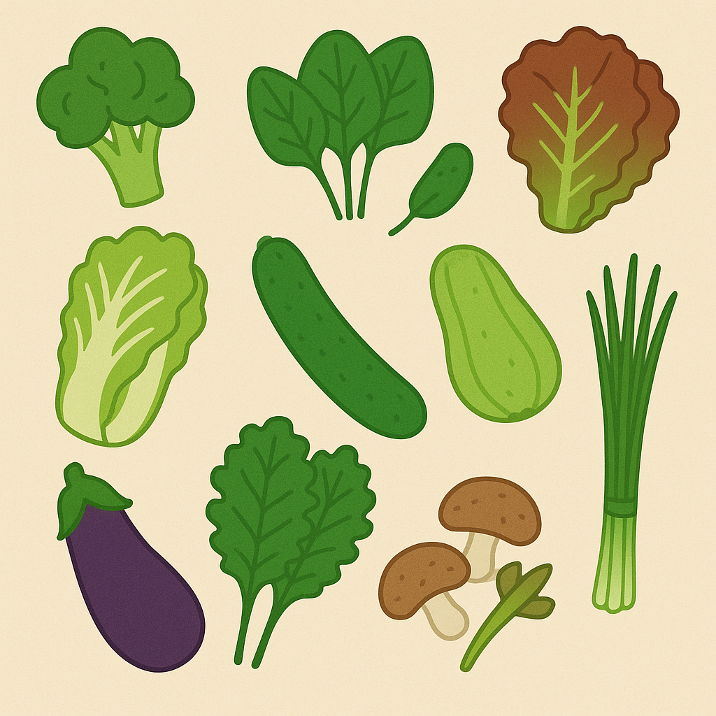 다음 채소들은 GI가 낮고, 섬유질이 풍부해 혈당을 천천히 올려주는 데 도움이 됩니다.