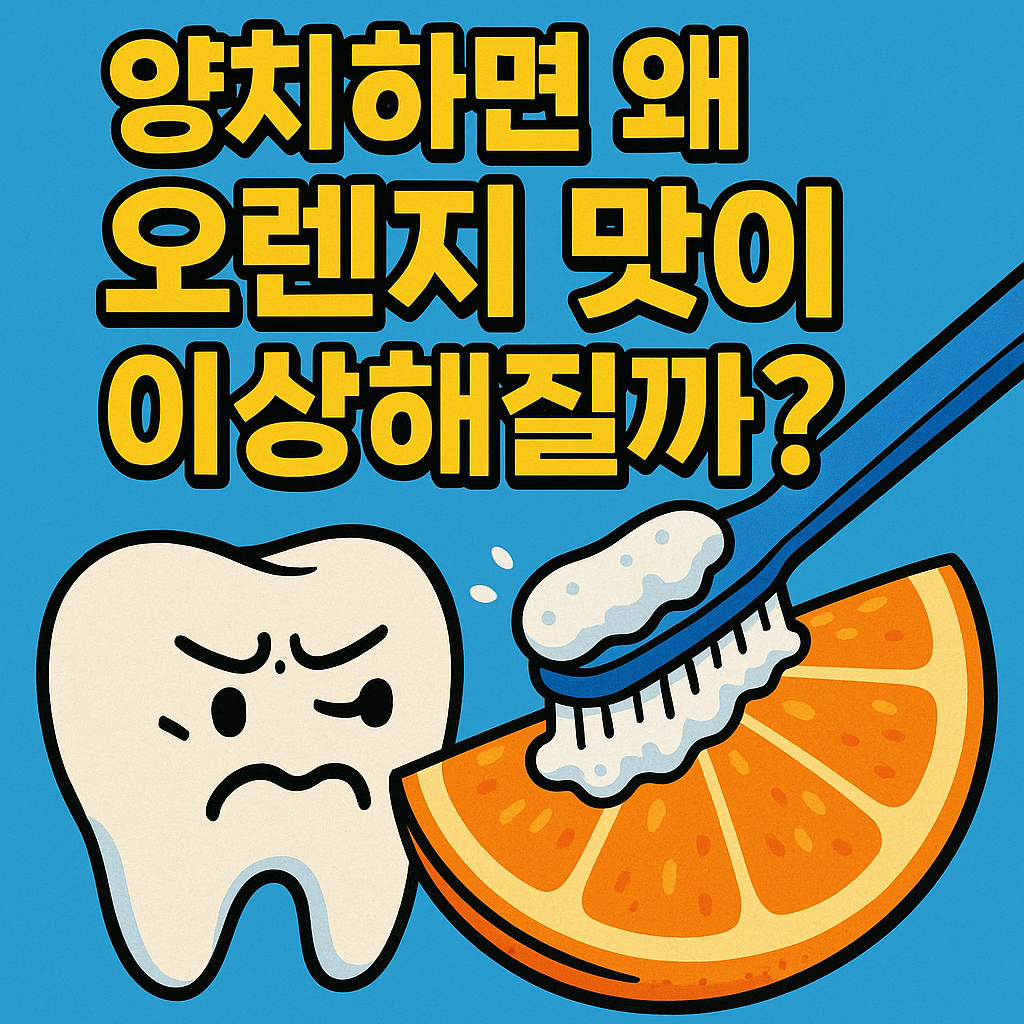 양치하고 오렌지 주스를 마셨는데… 갑자기 맛이 이상하게 느껴진 경험, 거의 모두가 갖고 있죠. 달콤·상큼해야 하는데 씁쓸·떫은 느낌만 남습니다. 이걸 “입맛이 꼬였다” 문제로 넘기기엔,