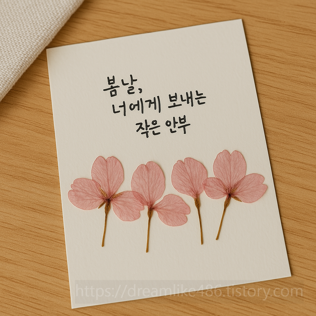 2. 💌 수제 엽서 – 벚꽃잎 붙이기