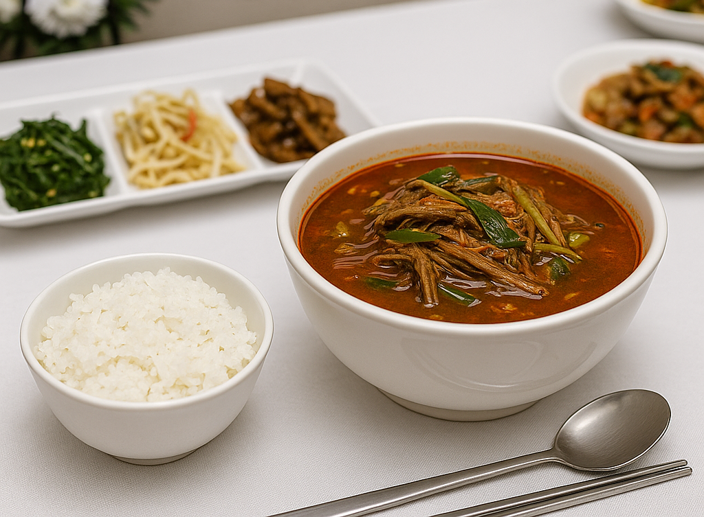 장례식장에서는 주로 국밥, 밥, 나물, 김치 등으로 구성된 식사가 제공돼요. 간소하지만 따뜻한 이 음식에는 정성과 위로가 담겨 있답니다.