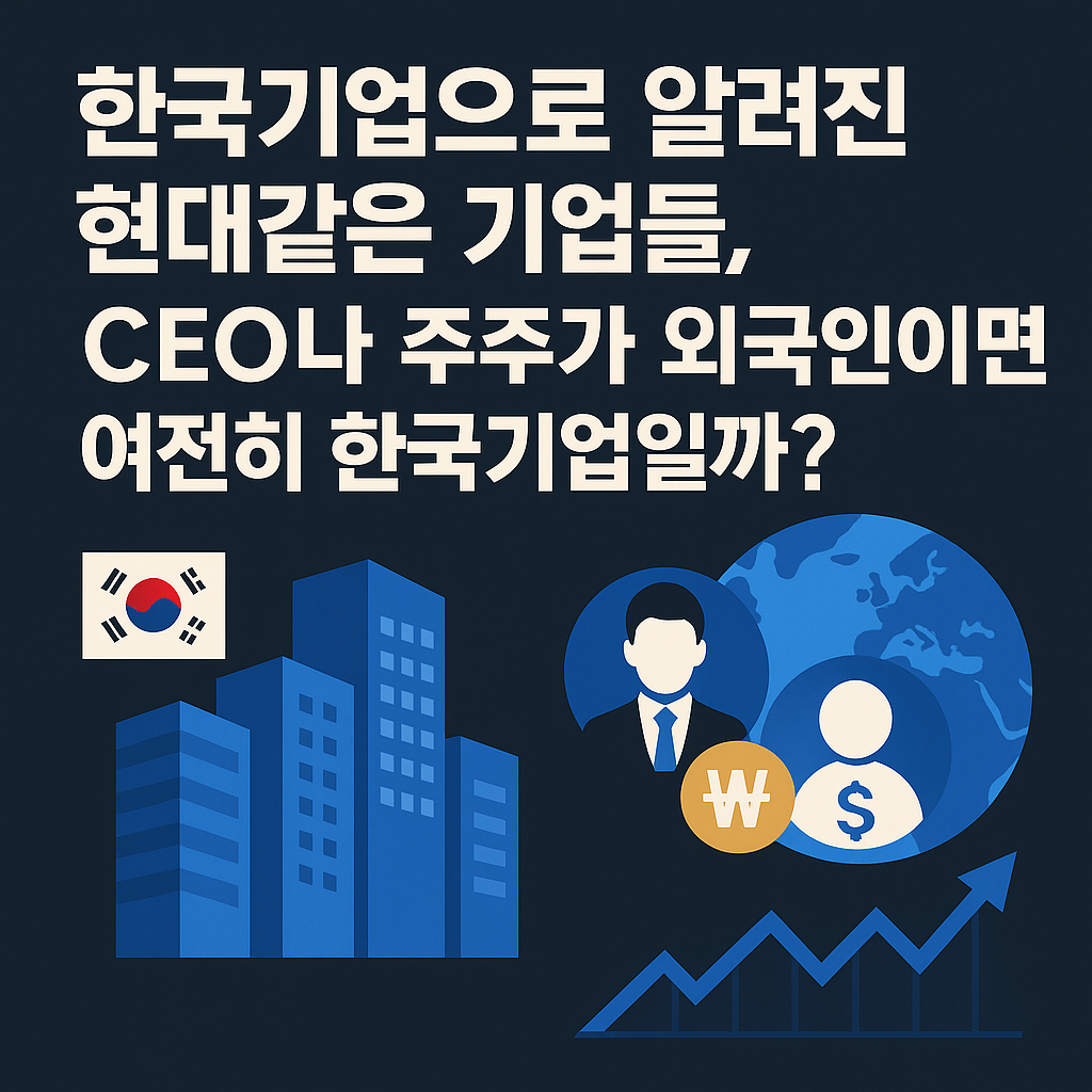 한국기업으로 알려진 현대같은 기업들, CEO나 주주가 외국인이면 여전히 한국기업일까?글로벌 시대라 경영진도, 주주도 국적이 다양해졌어요. 그래서 “이 회사, 아직 한국기업 맞나요?”라는 궁금증이 들더라구요. 결론부터 아주 짧게 말하면 “법적 국적 + 의사결정의 중심 + 국내 기여” 3가지를 함께 봐야하더라구요. CEO·주주 국적만으론 결론이 잘 안 나더랍니다.목차1 들어가며2 “기업의 국적”이란 게 정말 있을까?3 법적 국적 vs. 경제적 국적(제가 나눠본 두 가지)4 다섯 축 판별법: 어디를 보면 감이 오나요?5 헷갈리는 사례 유형들(외국인 CEO·외국인 지분·본사 이동 등)6 왜 이 구분이 중요한가요? 우리 입장에서 달라지는 것들7 제 나름의 라벨링: 한국기업 / 한국계 글로벌 / 글로벌 기업의 한..